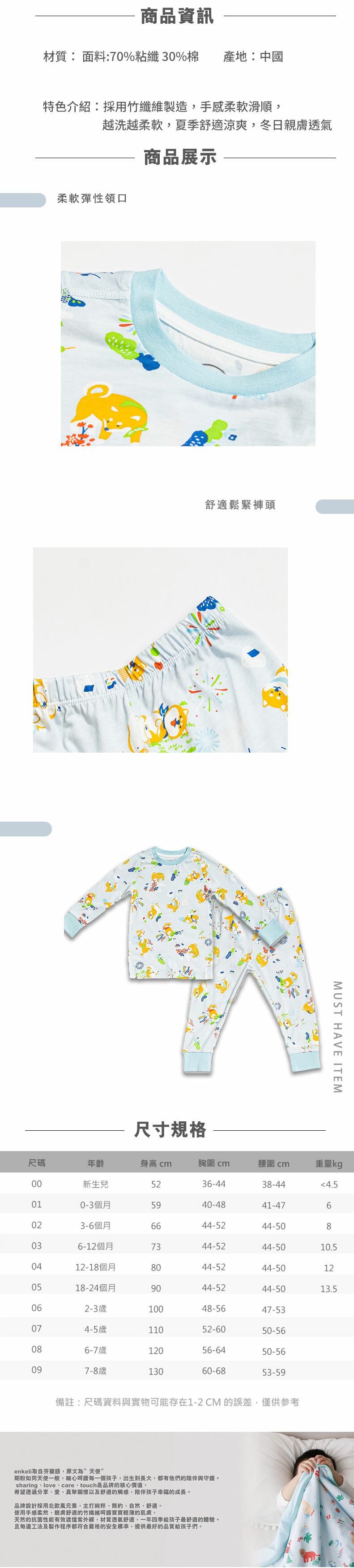 enkeli 竹系列柴吉野餐日長袖家居套裝 E21-L73-01-KB-MB