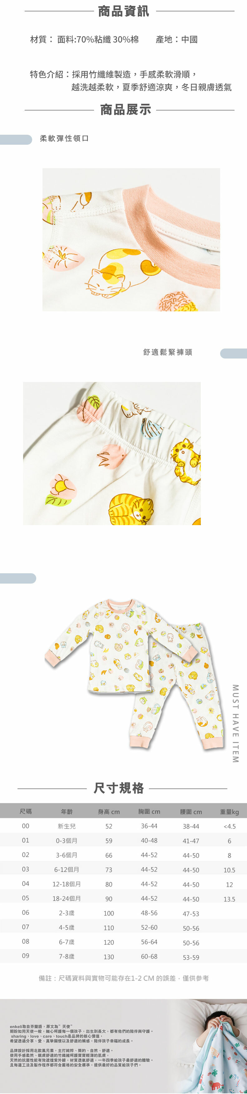 enkeli 竹系列貓咪和菓子長袖家居套裝 E21-L7401-KG-MR