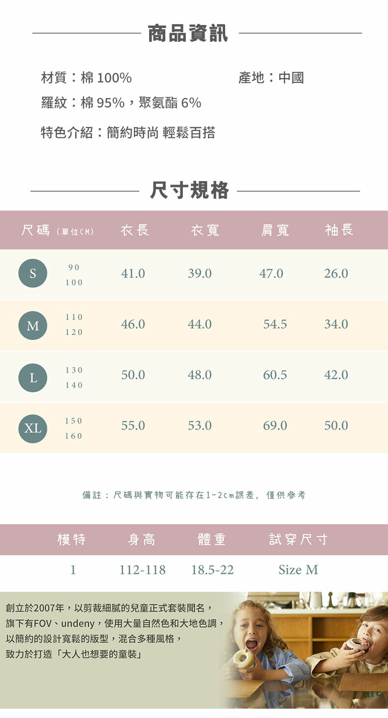 FOV 兒童六分袖短袖上衣 F41-A01-01-KU-WH