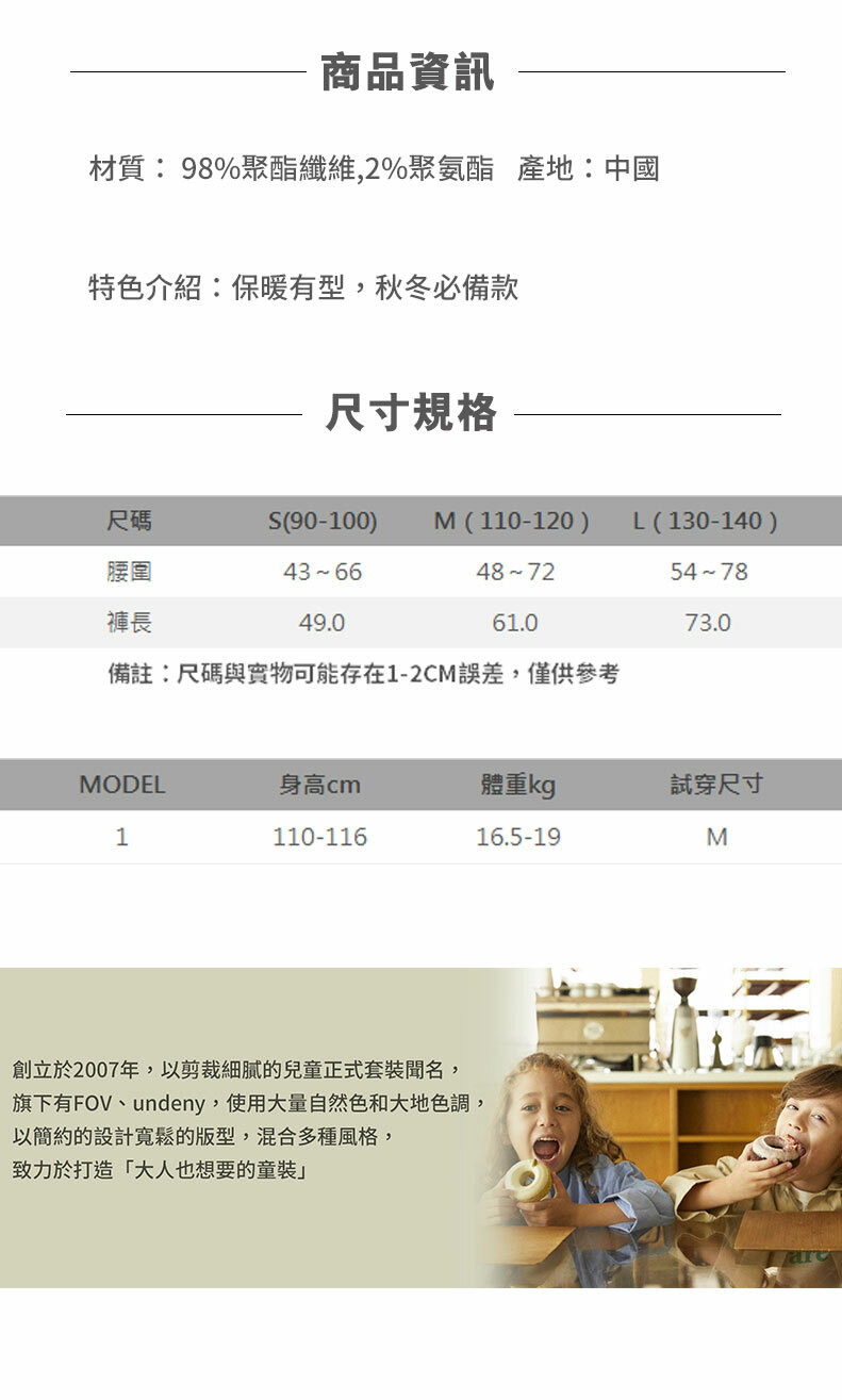 FOV 兒童綠格紋可調節休閒長褲 F23-F01-02-KU-BW