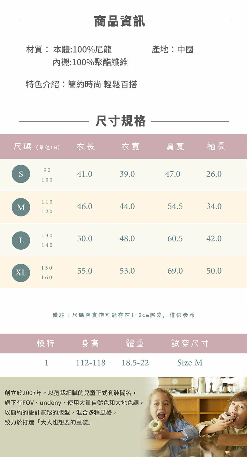 FOV 兒童保暖長袖外套 F33-C01-01-KU-CA