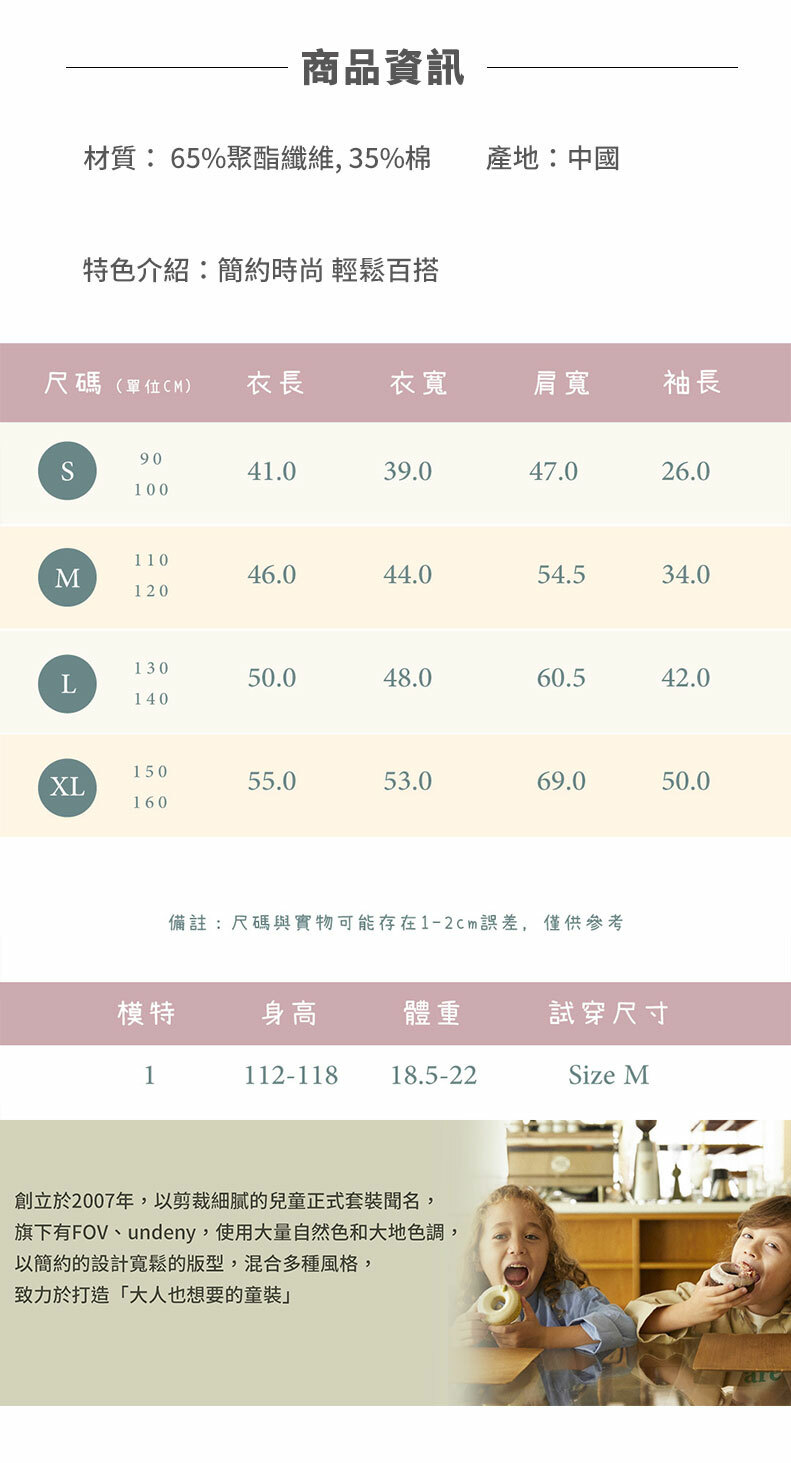 FOV 兒童休閒連帽長袖外套 F33-C01-05-KU-IV