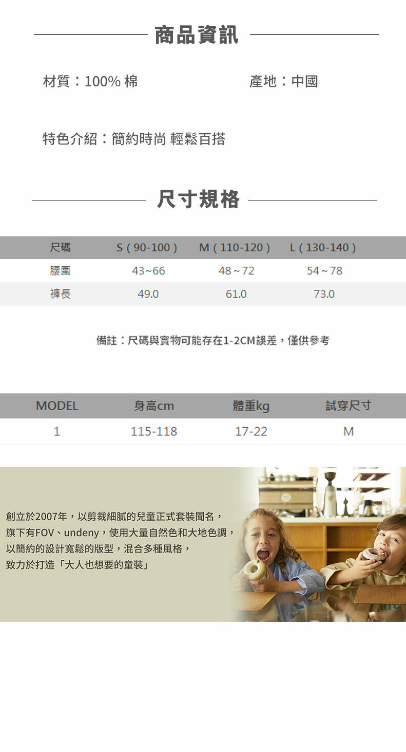 FOV 兒童純黑休閒長褲 F33-F01-02-KU-BK