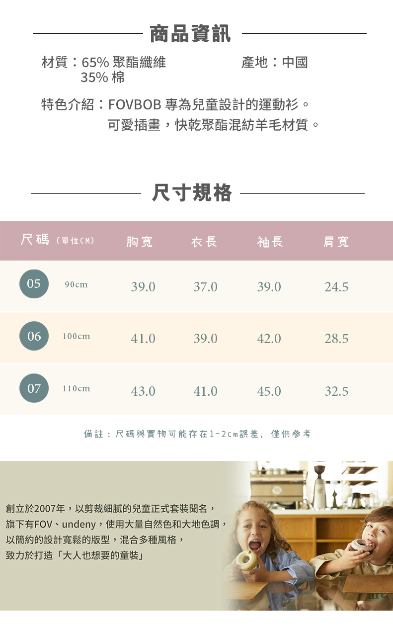 FOV 兒童熊熊印花快乾長袖上衣 F43-B01-08-KU-GU