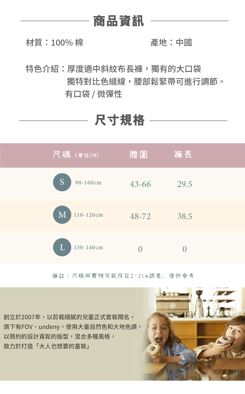 FOV 兒童大口袋米白色長袖長褲 F43-F01-03-KU-IV