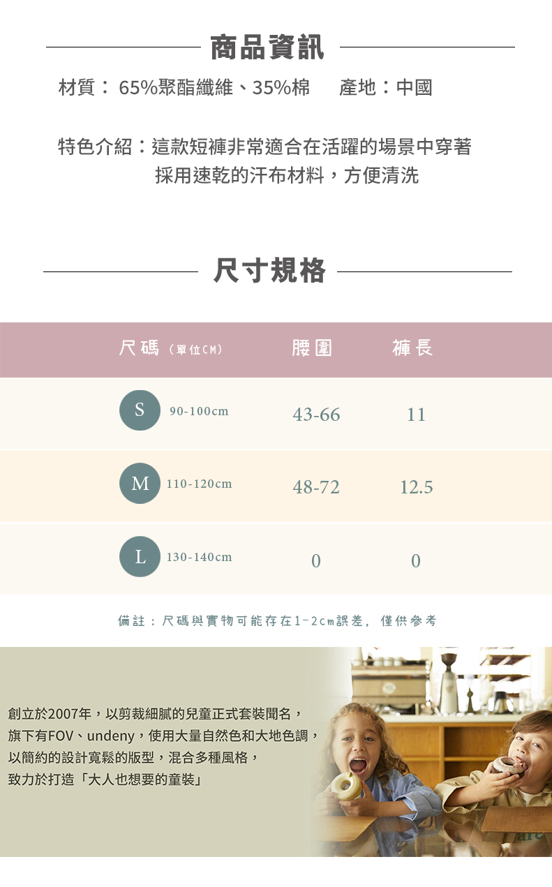 FOV 兒童黑休閒運動短褲 F51-E01-01-KU-BK