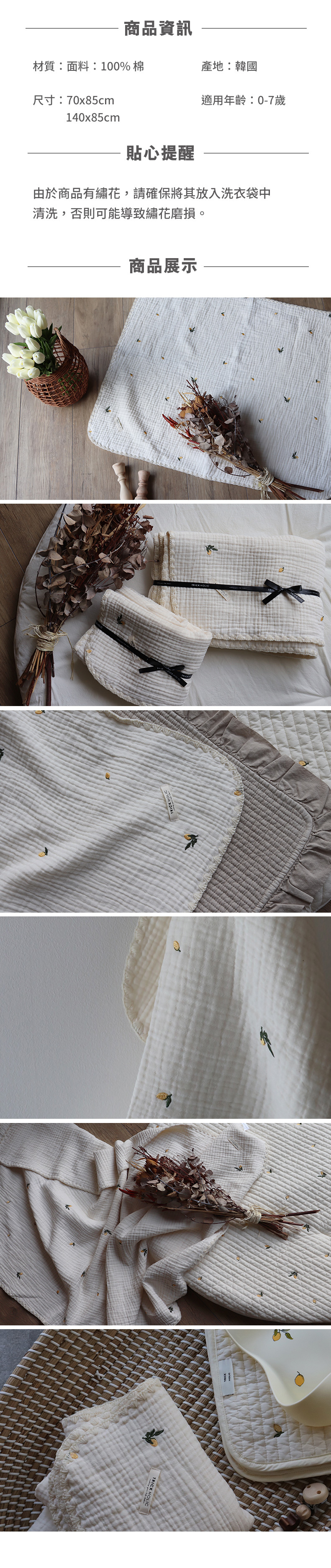 Trick Holic 六層紗檸檬刺繡毯子