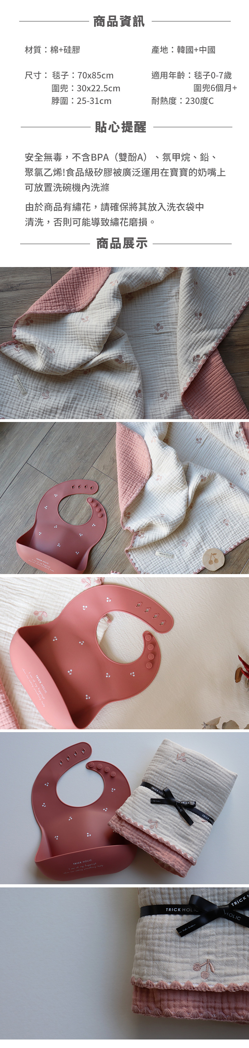 Trick Holic 櫻桃圍兜六層紗毯子禮盒組