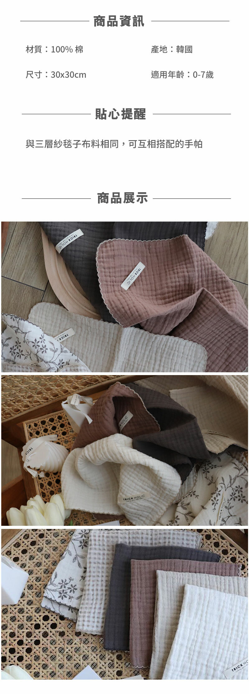 Trick Holic 素色三層紗手帕
