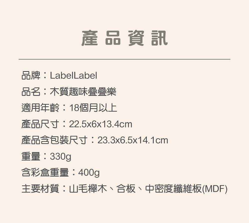 ●採用FSC™認證木質製成,外觀顏色使用兒童友善的水性顏料