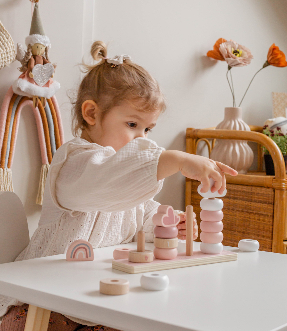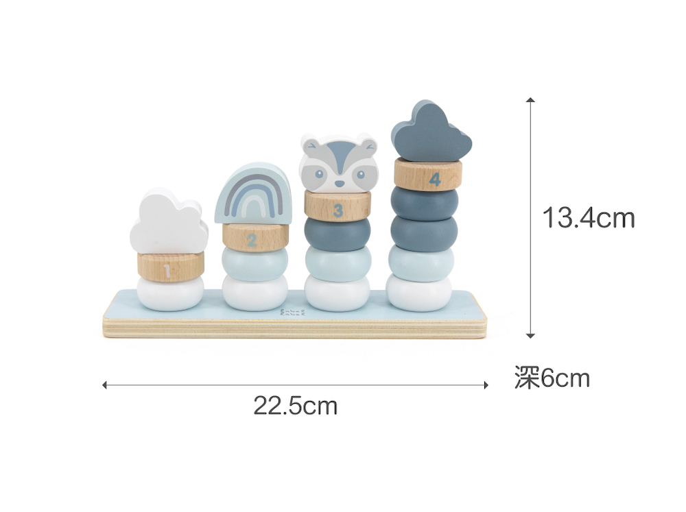 ●更進一階,依照圓環積木上的數字堆疊,訓練孩子數數