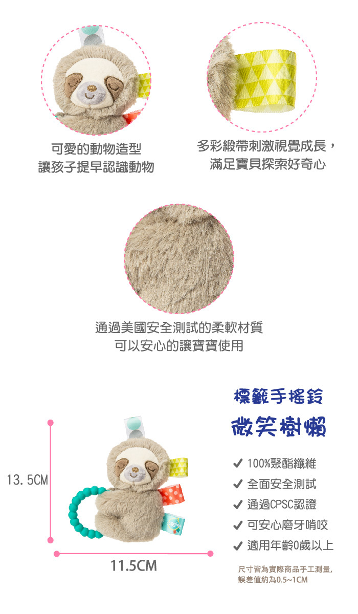 商品聲響設計,可刺激寶寶聽覺,亦適合寶寶手指動作練習。