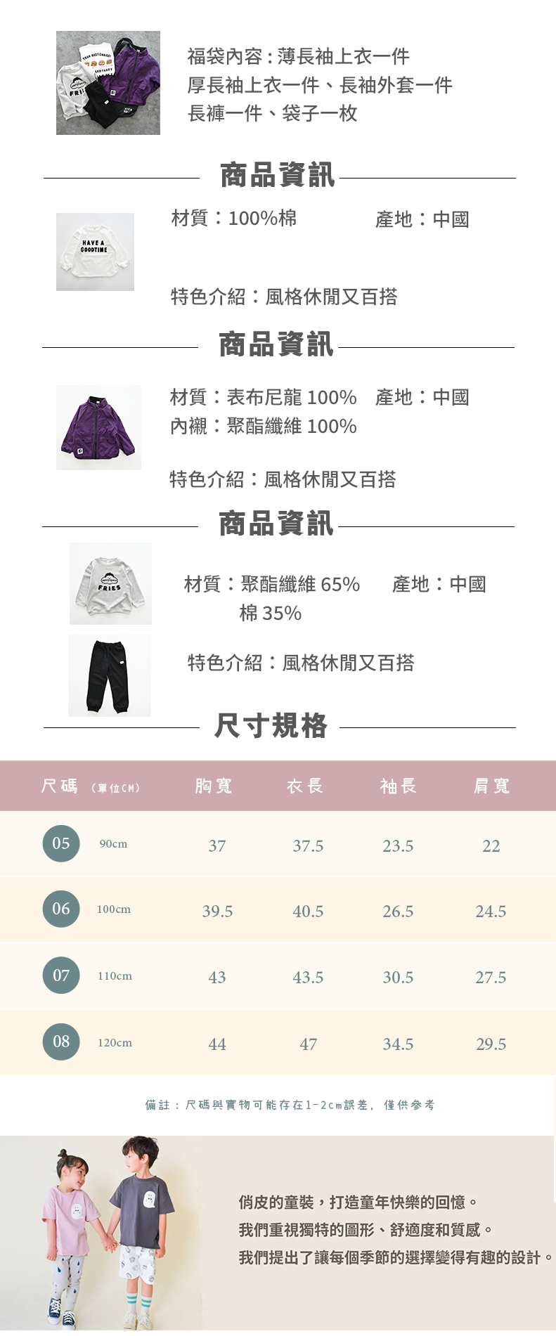 福袋為優惠商品,售出後除瑕疵、商品尺寸有誤
