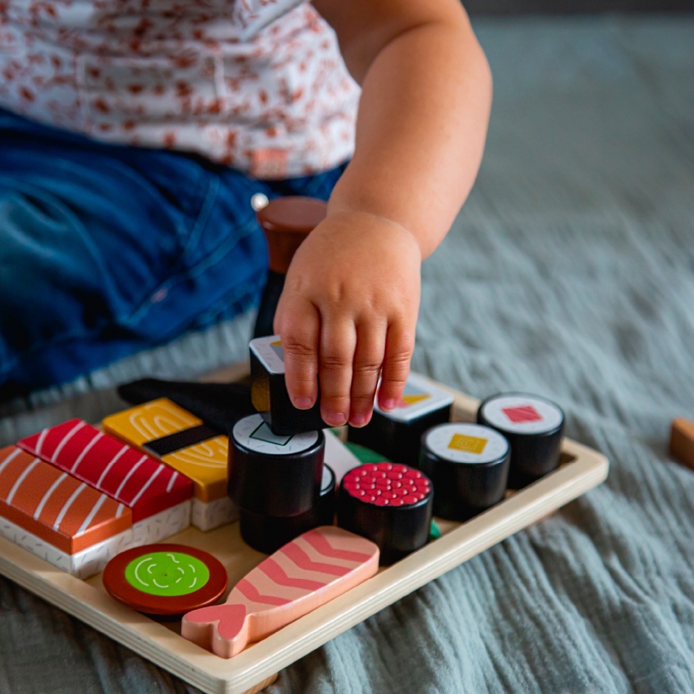 ●日式壽司配件共23塊,仿真的木質玩具,激發孩子的想像力體驗角色扮演