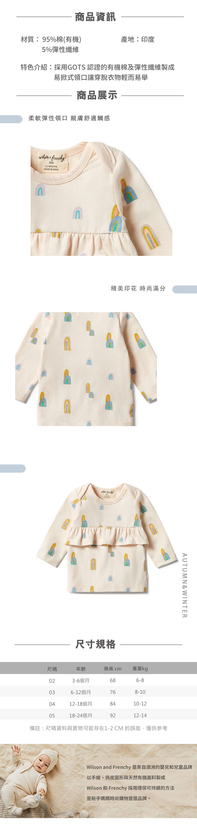 Wilson & Frenchy 女嬰彩色山有機棉長袖上衣 W13-E01-02-BG-PG