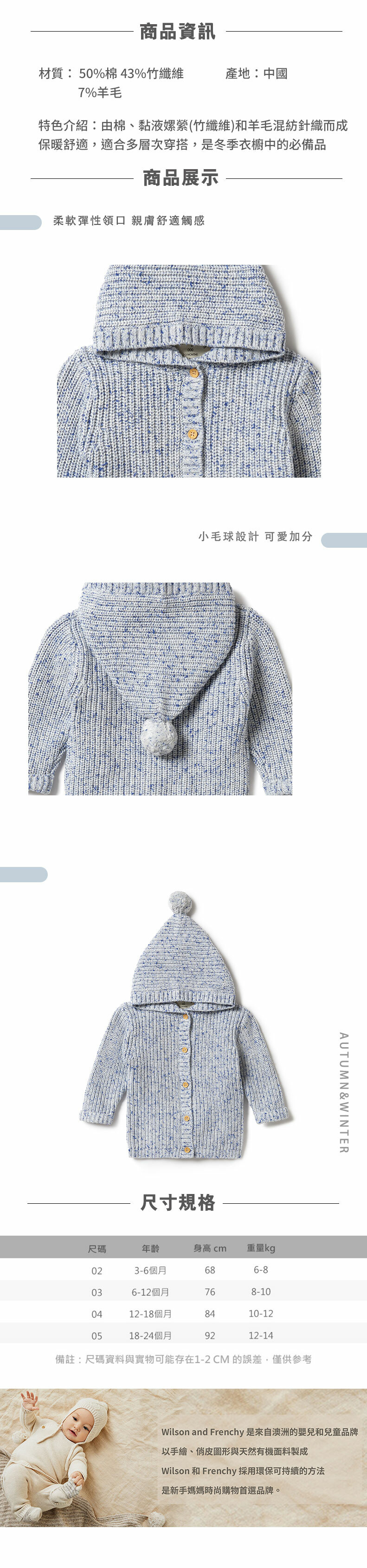 Wilson & Frenchy 嬰兒編織藍針織長袖外套 W23-J01-02-BB-BN