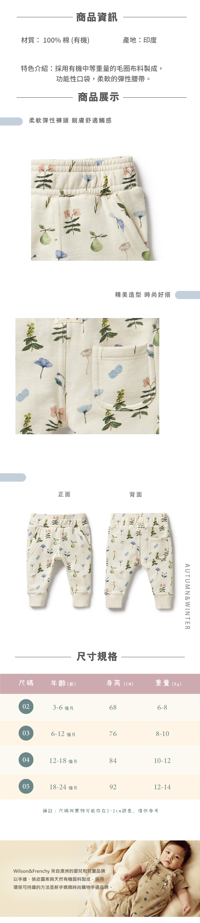 Wilson & Frenchy 嬰兒手繪小花長袖長褲 W43-D01-02-BG-WF