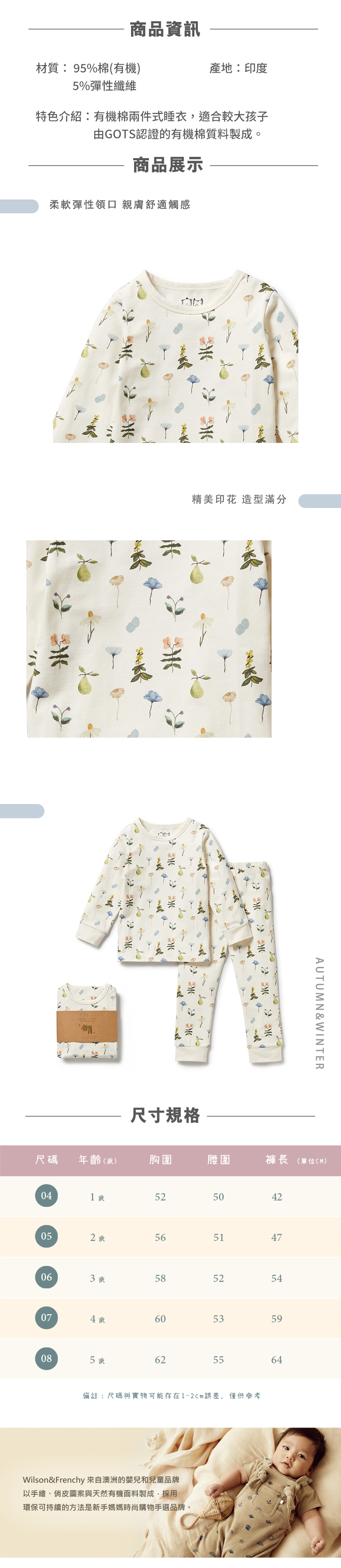 Wilson & Frenchy 女童手繪花草長袖家居服 W43-D01-13-BG-WF