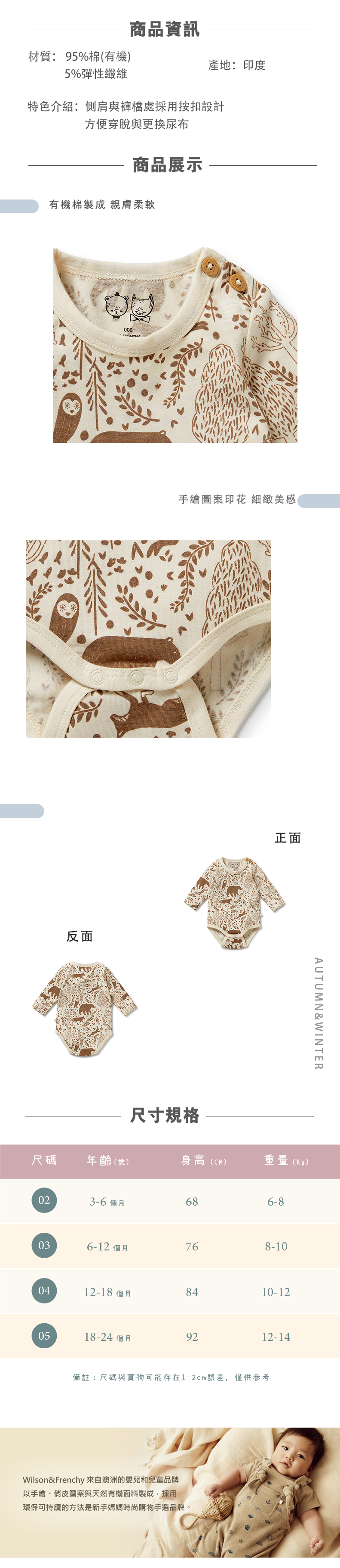 Wilson & Frenchy 嬰兒森林動物長袖包屁衣 W53-C01-01-BB-WB