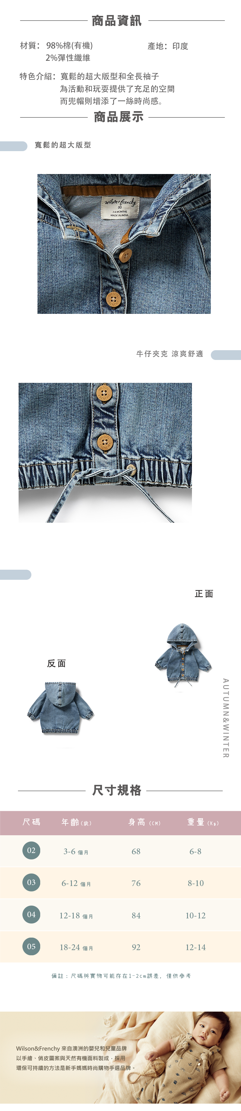 Wilson & Frenchy 男女嬰牛仔長袖外套 W53-E01-04-BU-DN