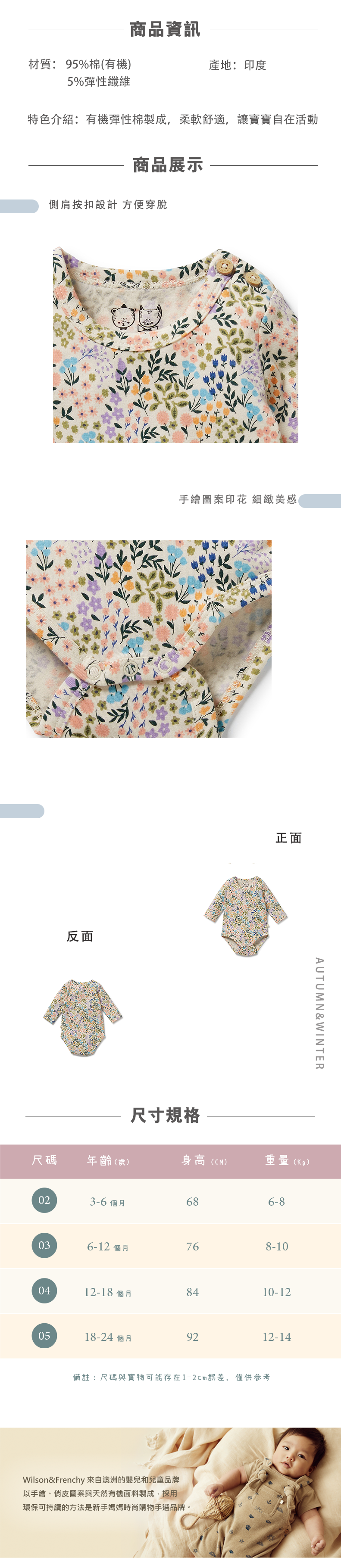 Wilson & Frenchy 嬰兒花語漫漫長袖包屁衣 W53-F01-02-BG-WF