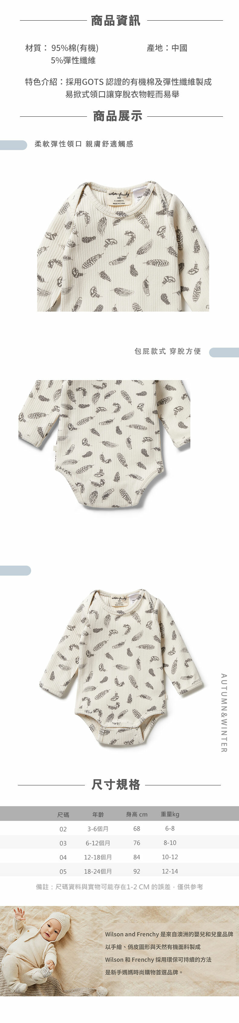 Wilson & Frenchy 嬰兒羽毛長袖包屁衣 W23-D01-02-BU-WG