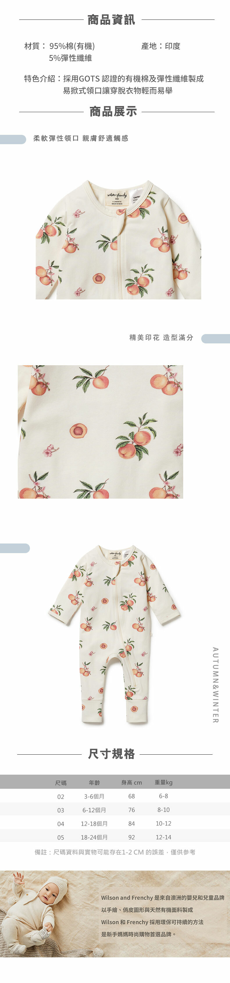 Wilson & Frenchy 嬰兒桃子長袖連身衣 W23-I01-03-BG-WR