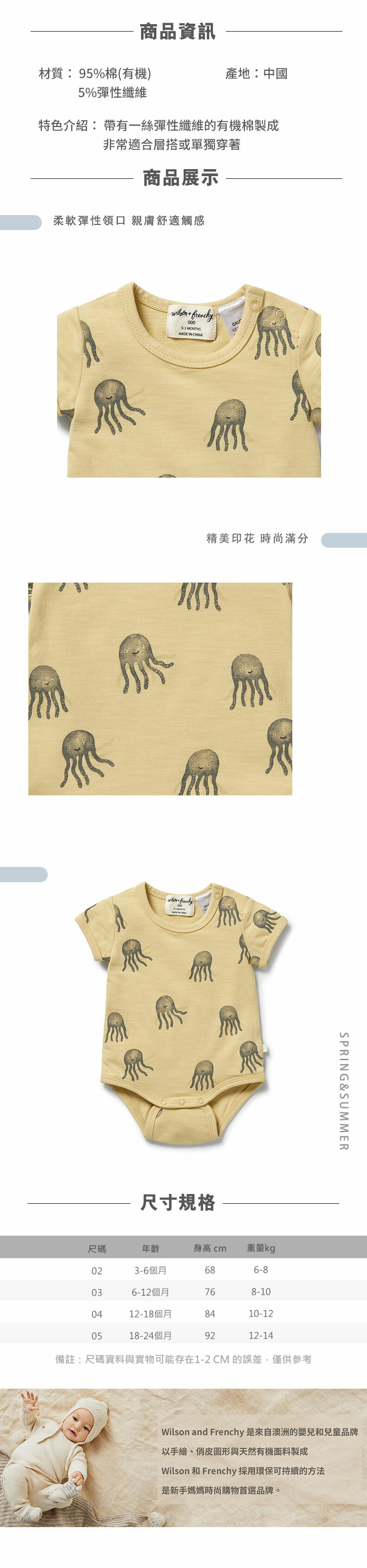 Wilson & Frenchy 嬰兒水母短袖包屁衣 W31-B01-01-BB