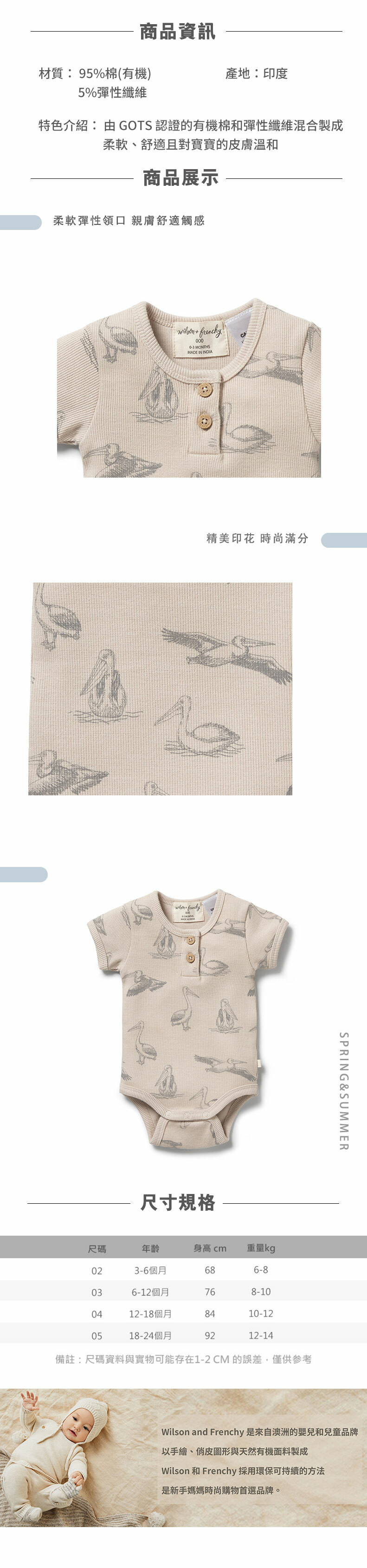 Wilson & Frenchy 嬰兒白鷺鷥短袖包屁衣 W31-B01-09-BB