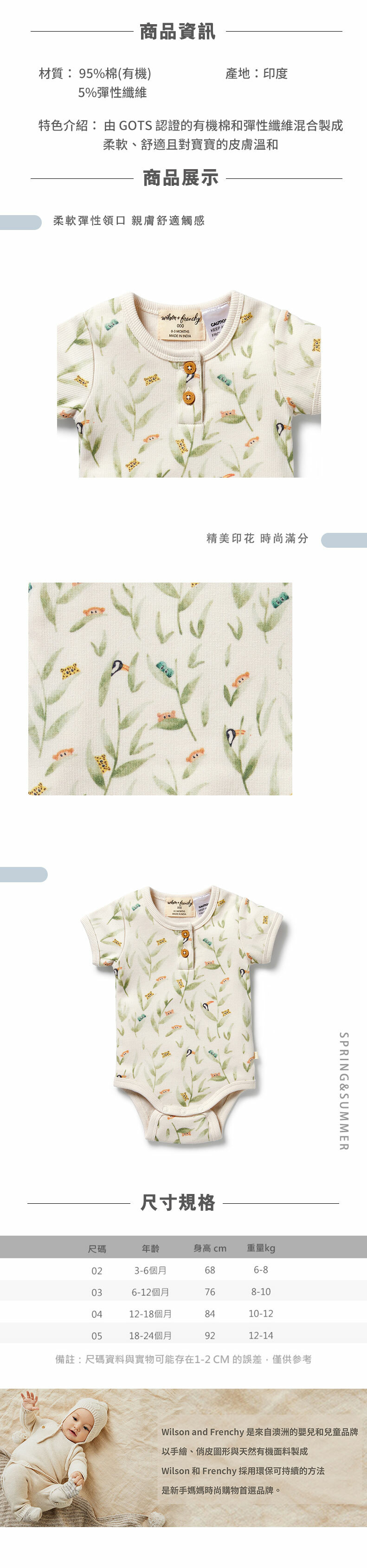 Wilson & Frenchy 嬰兒花草短袖包屁衣 W31-D01-10-BG