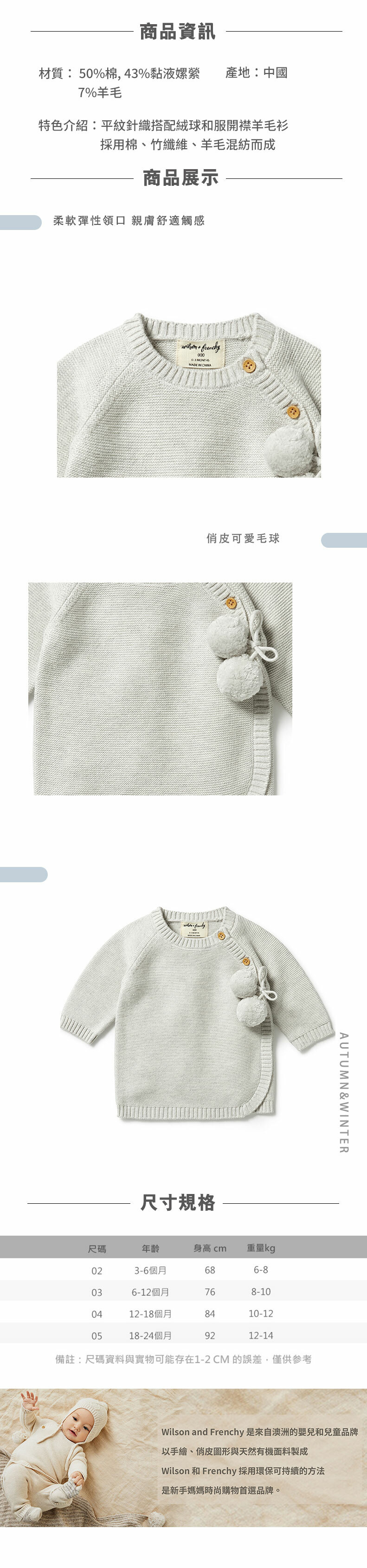 Wilson & Frenchy 嬰兒淺灰造型長袖上衣 W33-A01-01-BU-WG