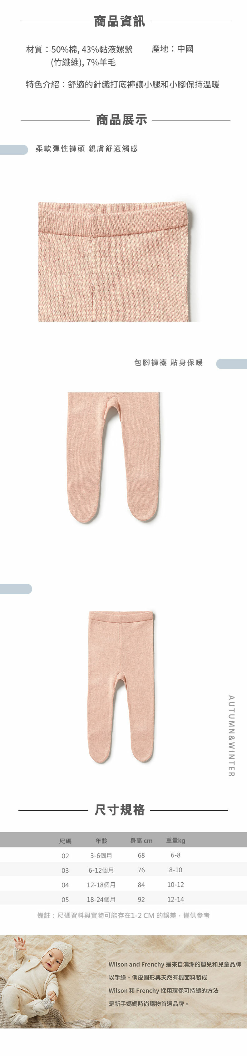 Wilson & Frenchy 嬰兒粉色包腳長褲 W33-F01-04-BG-CP