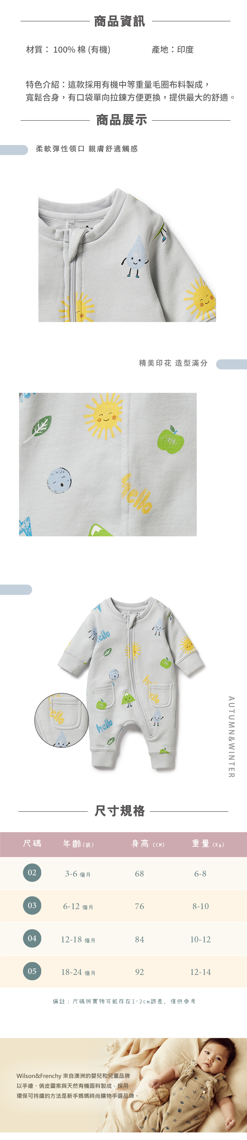 Wilson & Frenchy 嬰兒童趣圖案長袖連身衣 W43-C01-01-BB-BB