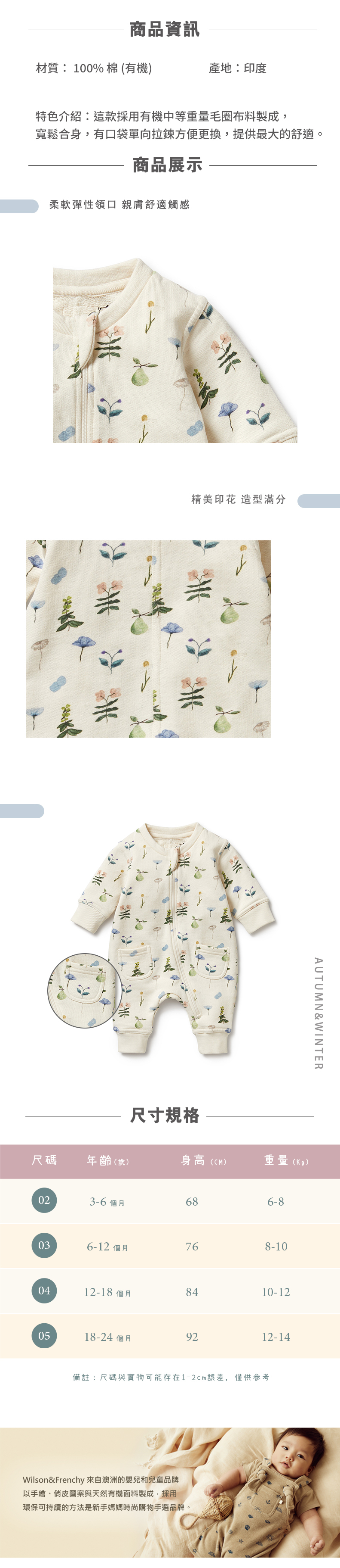 Wilson & Frenchy 嬰兒手繪草花長袖連身衣 W43-D01-05-BG-WF