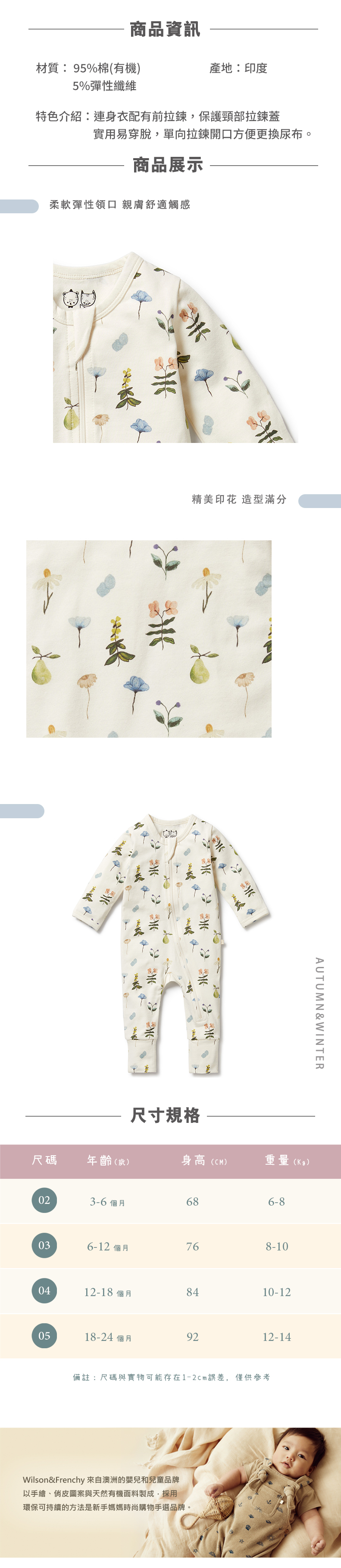 Wilson & Frenchy 嬰兒手繪花草長袖連身衣 W43-D01-10-BG-WF