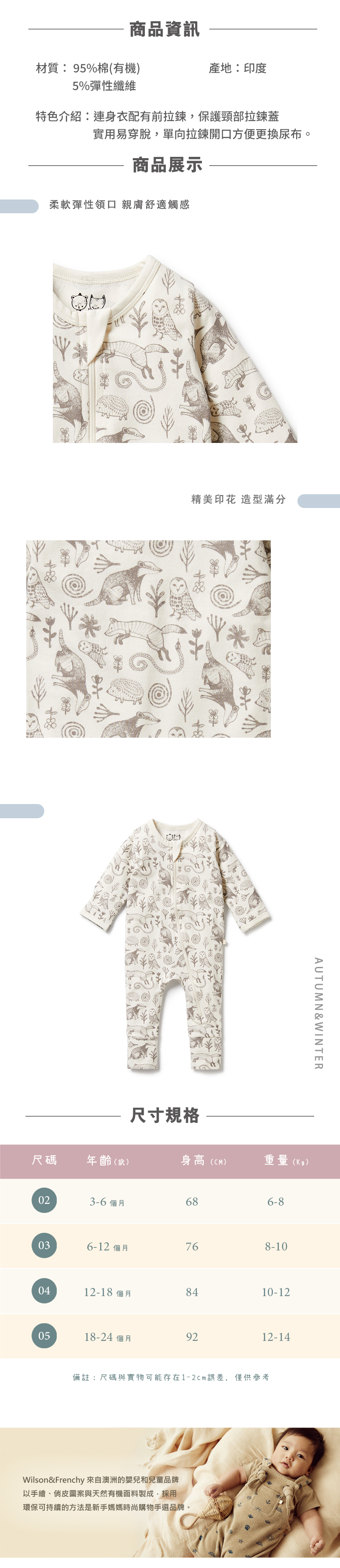 Wilson & Frenchy 嬰兒復古小動物長袖連身衣 W43-E01-04-BU-WB