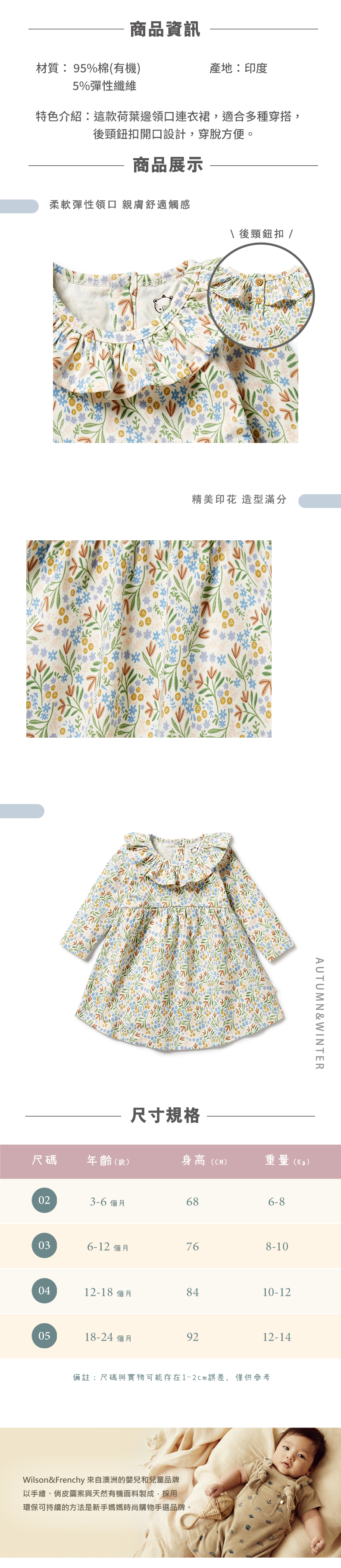 Wilson & Frenchy 嬰兒繽紛小花長袖連身裙 W43-F01-06-BG-WF