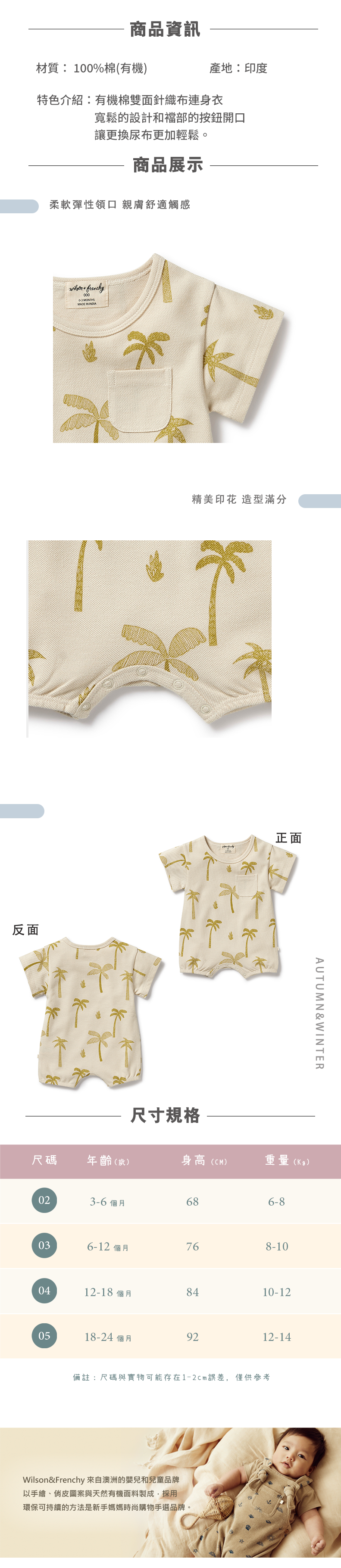 Wilson & Frenchy 嬰兒椰子樹短袖連身衣 W51-B01-10-BB-WY