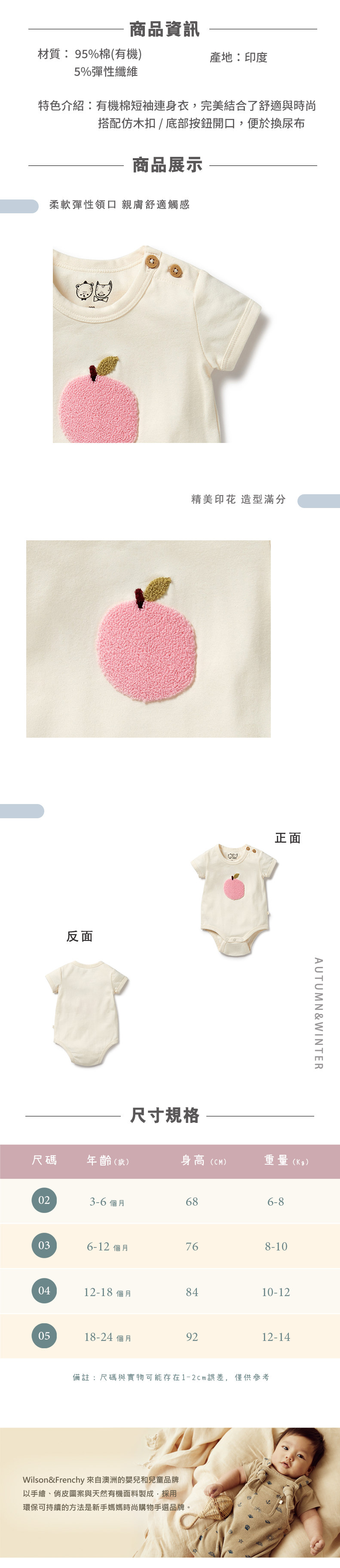 Wilson & Frenchy 嬰兒蘋果短袖包屁衣 W51-C01-13-BU-WP