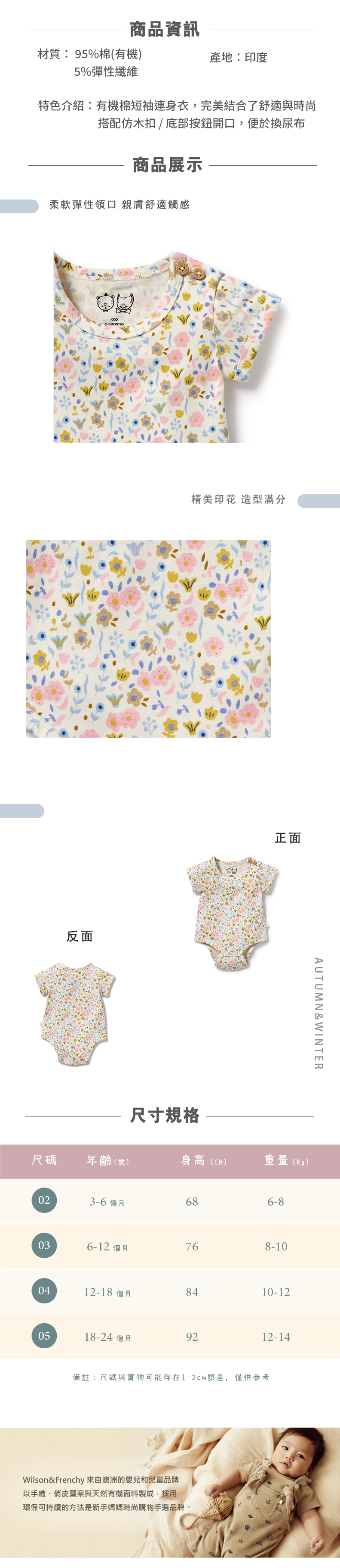 Wilson & Frenchy 嬰兒手繪小花短袖包屁衣 W51-D01-01-BB-WN