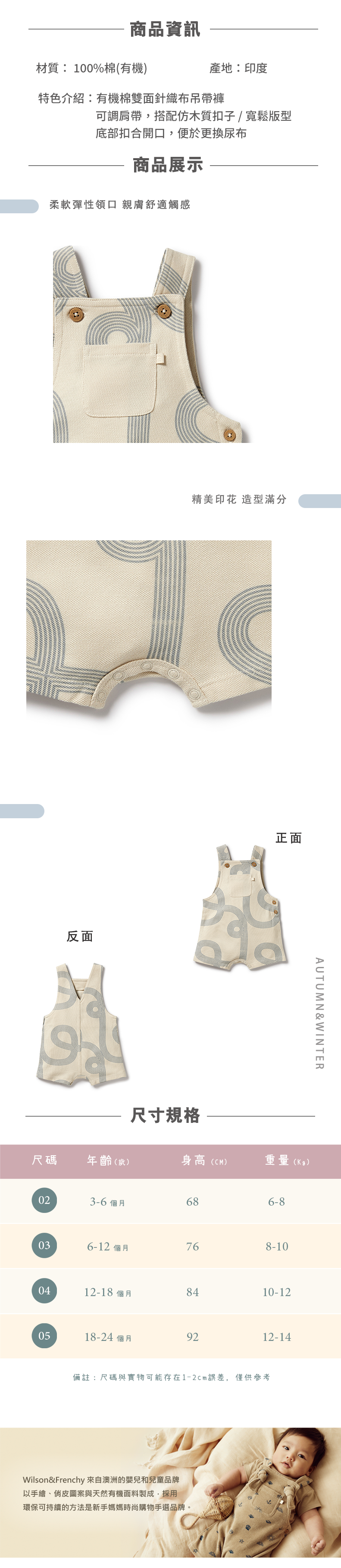 Wilson & Frenchy 嬰兒簡約吊帶褲 W51-D01-07-BB-WB