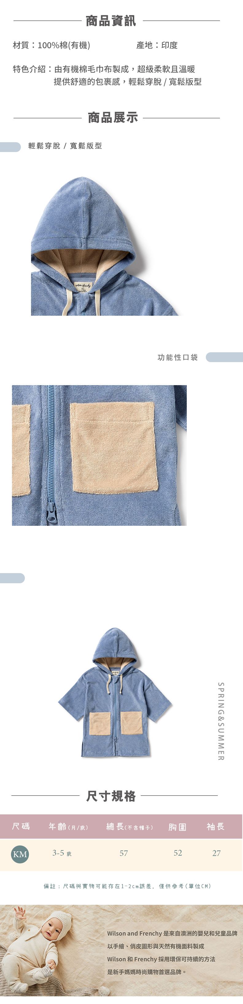 Wilson & Frenchy 兒童藍色口袋連帽浴袍 W51-F01-02-KB-DB