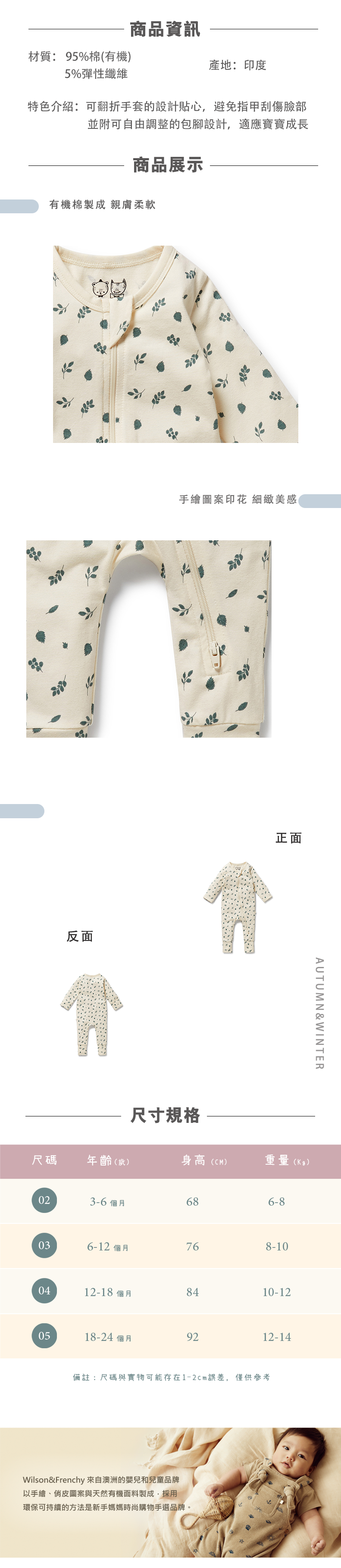 Wilson & Frenchy 嬰兒小樹芽長袖連身衣 W53-B01-01-BU-WG
