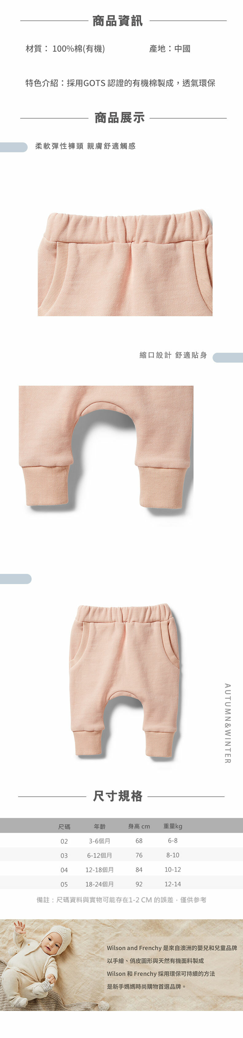 Wilson & Frenchy 嬰兒溫柔粉休閒長褲 W23-H01-02-BG-PP