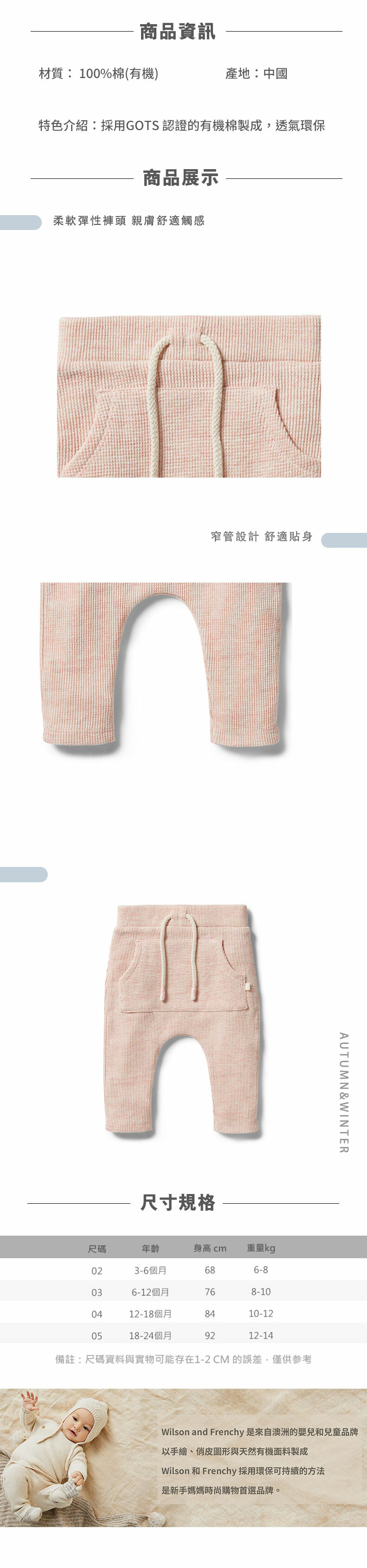 Wilson & Frenchy 嬰兒溫柔粉貼身長褲 W23-M01-02-BG-LP