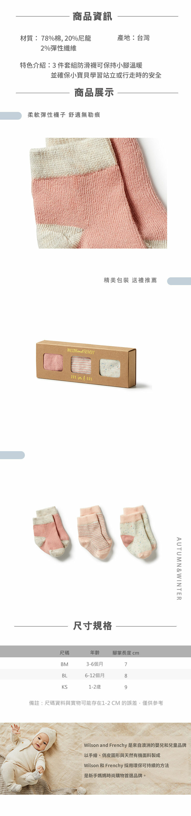 Wilson & Frenchy 男女止滑襪3件組-粉 W33-F01-A1-BG-WP