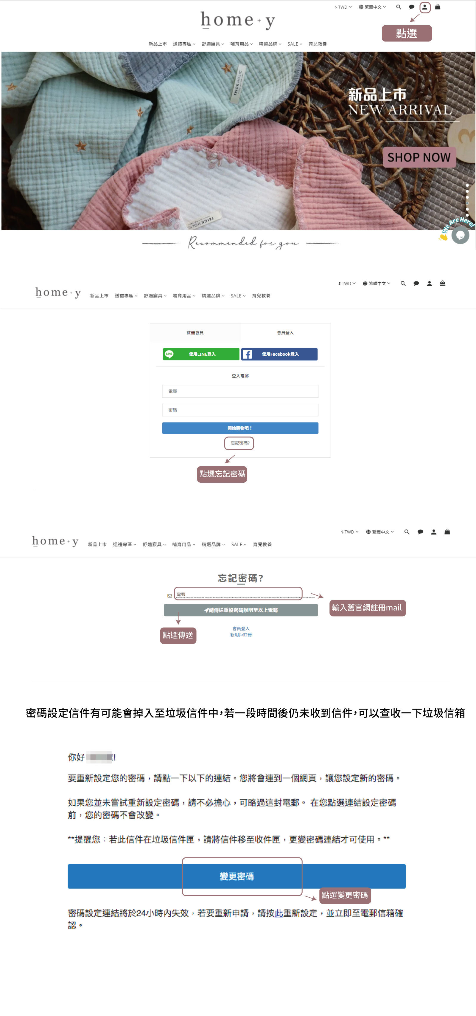 Hallmark Babie舊會員依照以下指示操作重新設定密碼即可,不需要重新註冊喔!!!