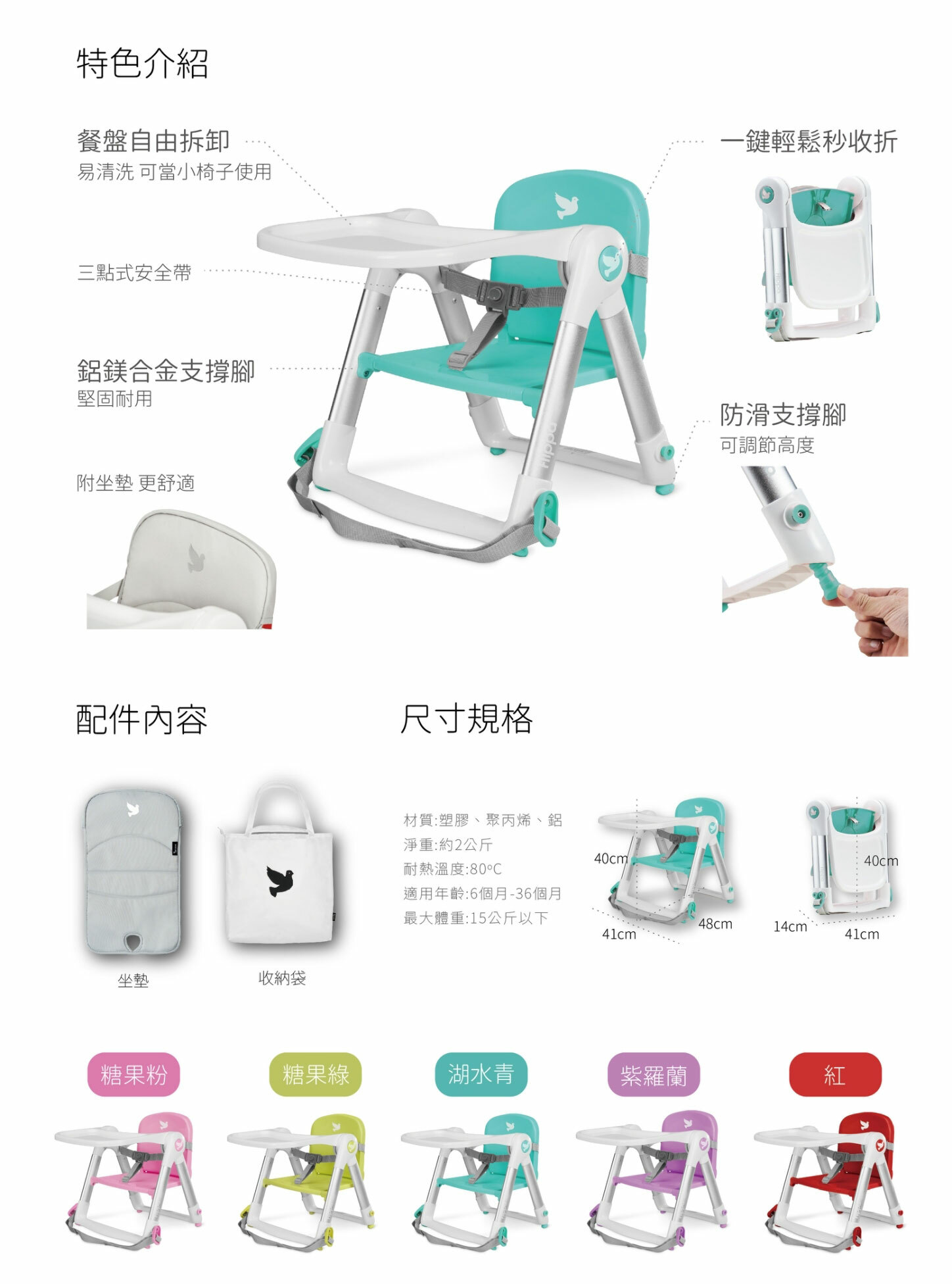 餐椅落地的四個點需明確固定在座墊上,以防止意外發生