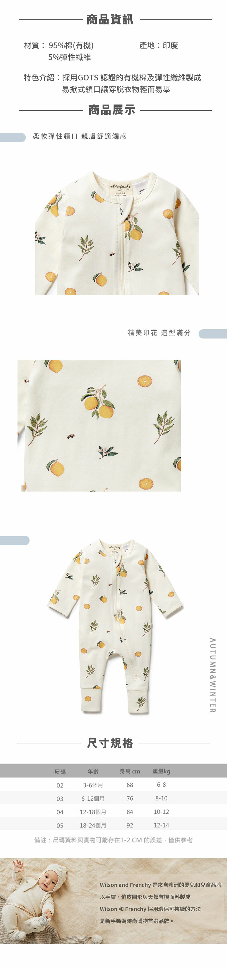 Wilson & Frenchy 嬰兒檸檬長袖連身衣 W23-A01-03-BG-WY