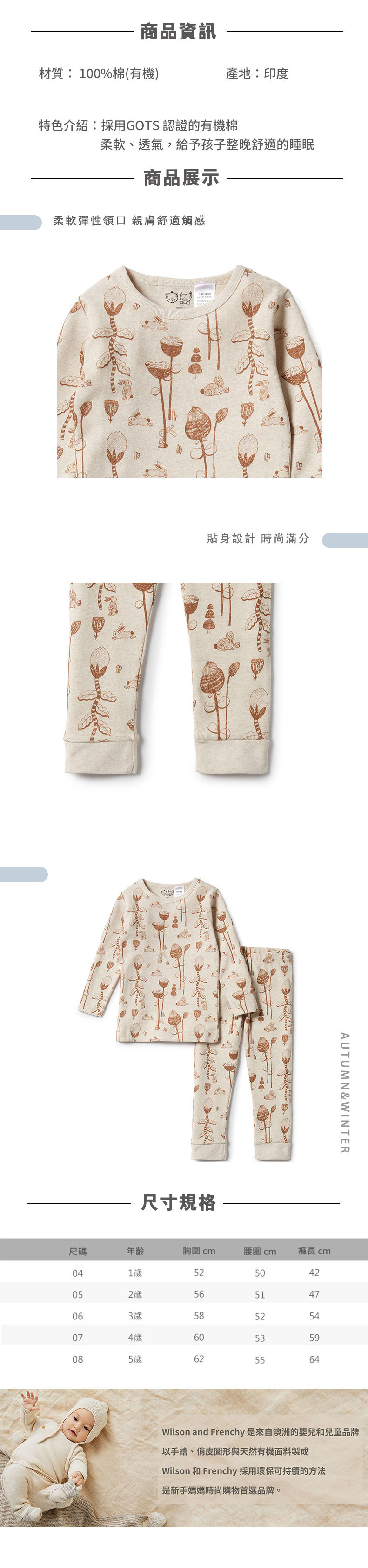 Wilson & Frenchy 女童野兔棉有機棉長袖睡衣套裝 W13-F01-02-KG-WB